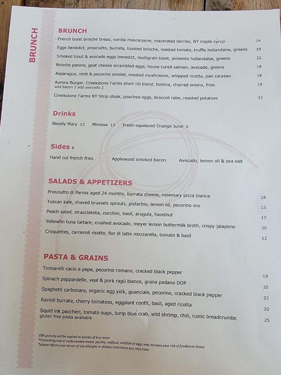 Aurora Brooklyn Menu